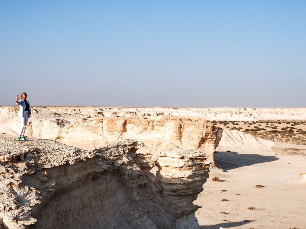Tra le esperienze più inedite del mio itinerario quella nel deserto bianco, o Wadi al Dahek, una delle aree naturali meno conosciute del Paese.
